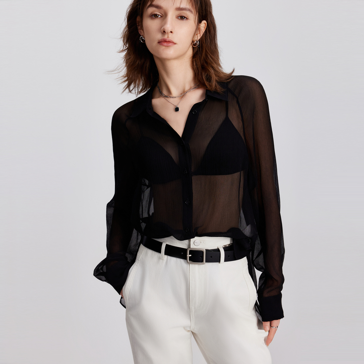 ELLE Рубашка Women's Black Lapel Moderate Others