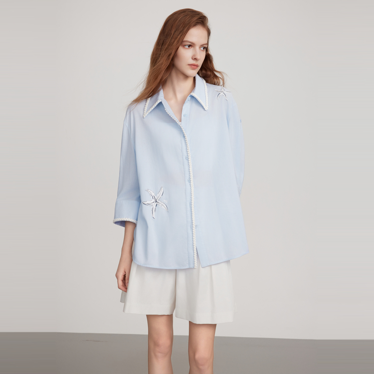 ELLE Рубашка Women's Blue Lapel Thin 6 325₽
