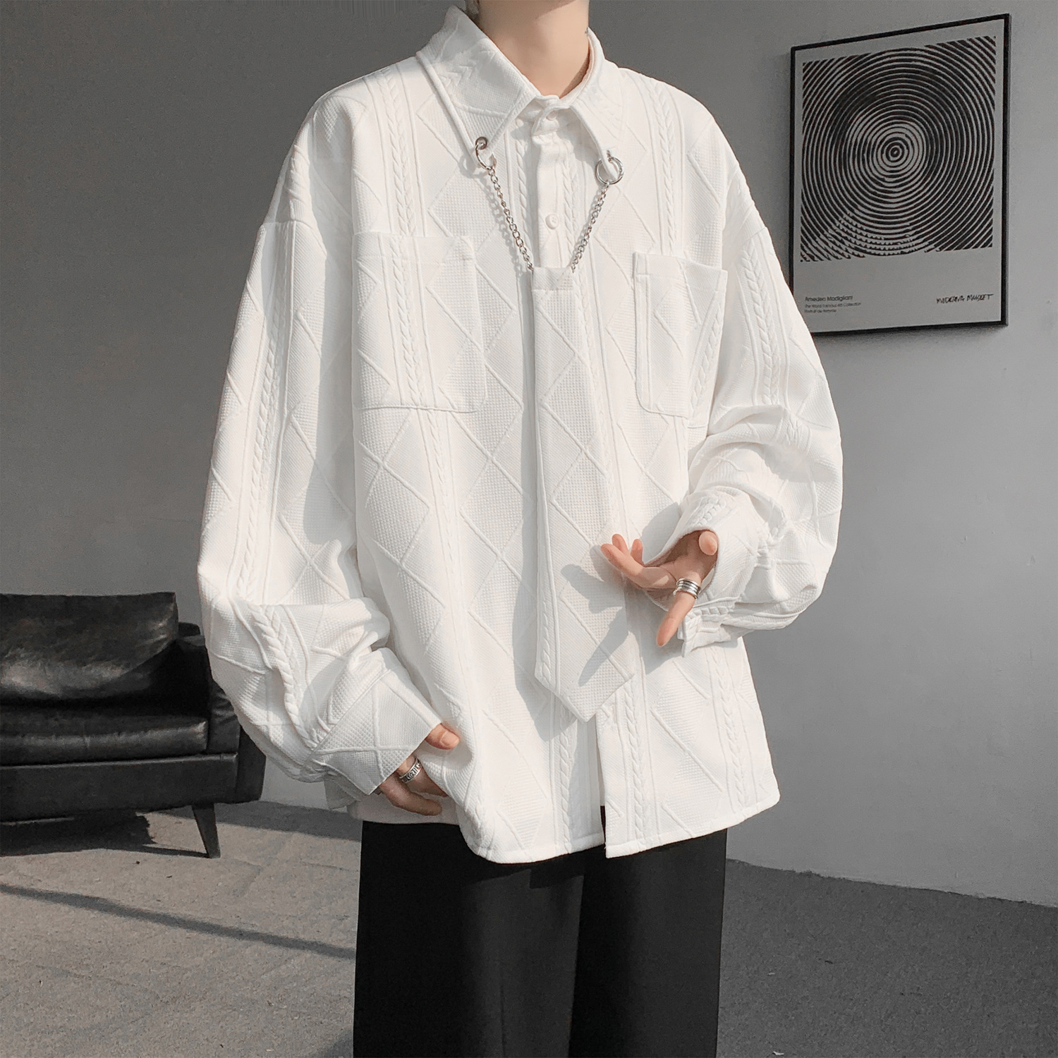 Рубашка Unisex Lapel Moderate ZIAREL, экрю with tie