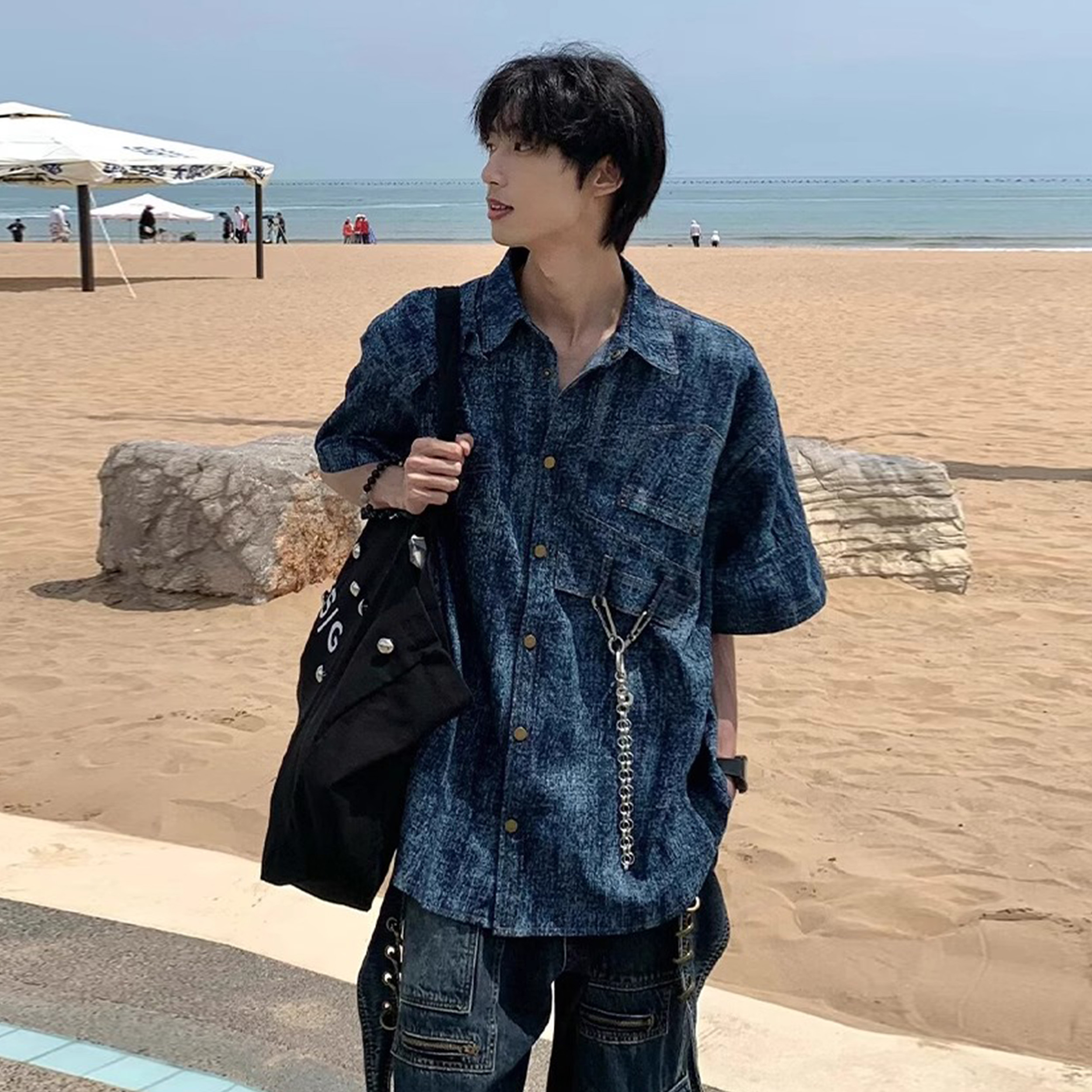 ZIAREL Рубашка Unisex Blue Lapel Moderate Denim 4 008₽