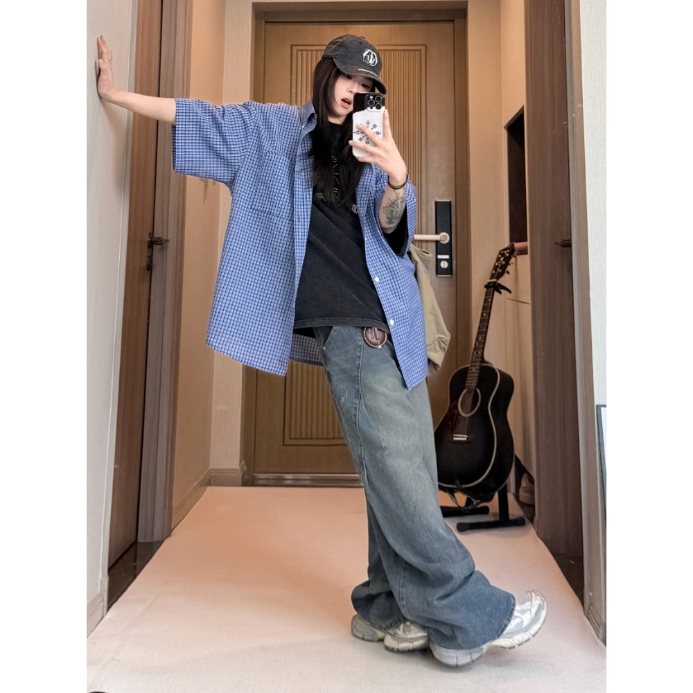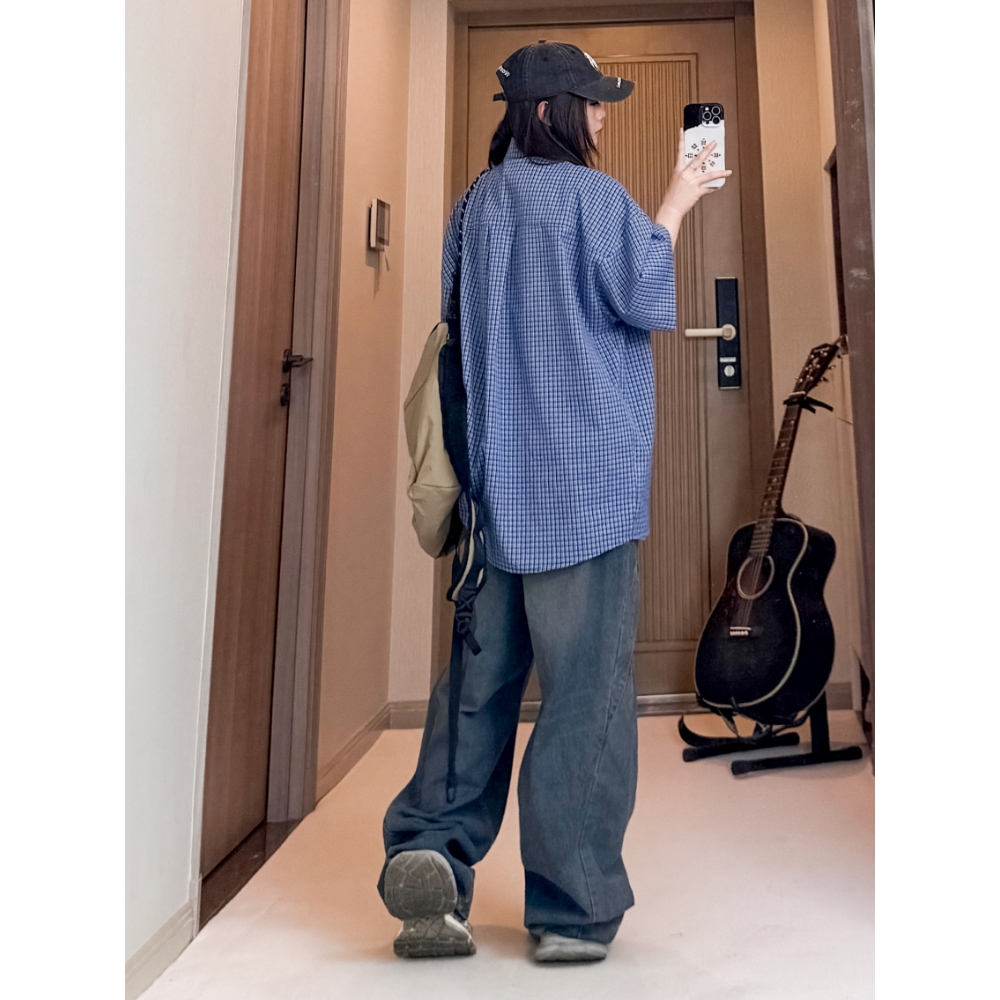 X1617 Рубашка Unisex Blue Plaid Lapel Moderate Others 2 276₽