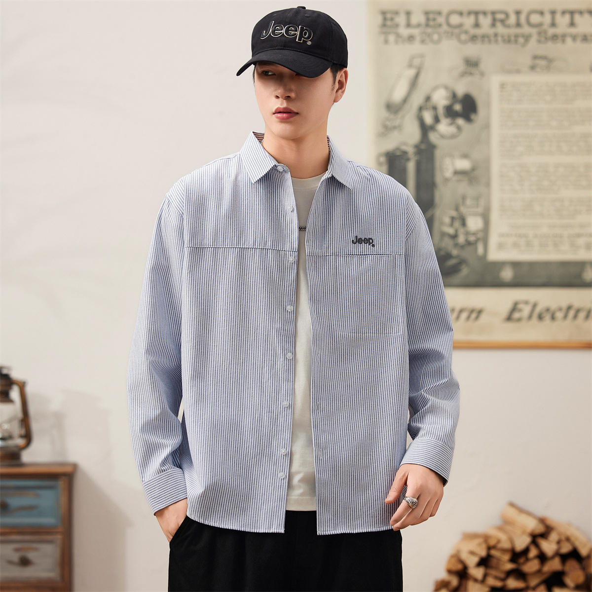 Рубашка Unisex Lapel Moderate Straight Fit Jeep, синий 5 583₽