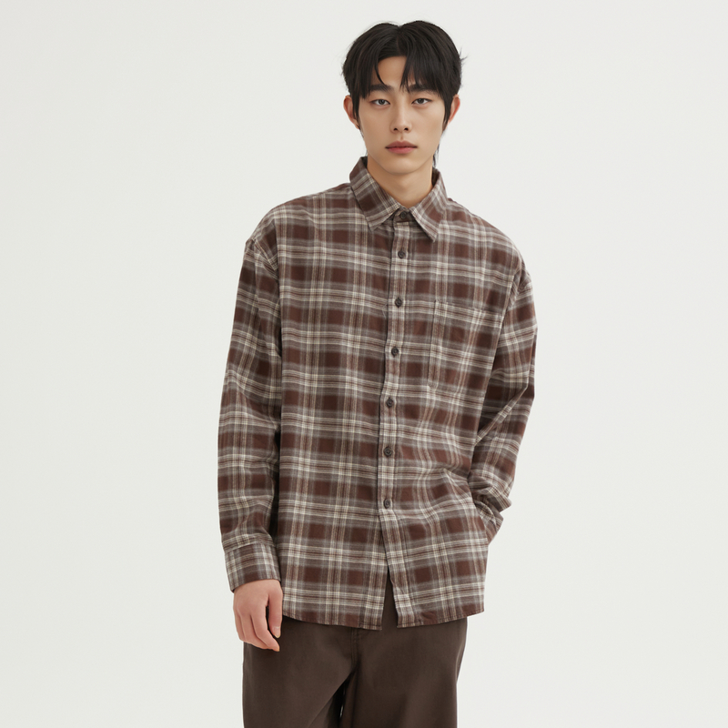 Рубашка Unisex Lapel Moderate SPAO, коричневый 5 047₽