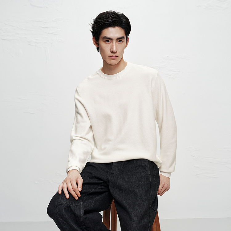 PEACEBIRD MEN Свитер мужской белый 1 Crew Neck Moderate