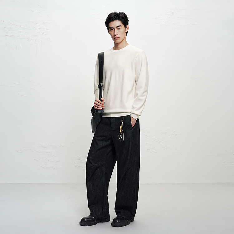PEACEBIRD MEN Свитер мужской белый 1 Crew Neck Moderate 12 150₽