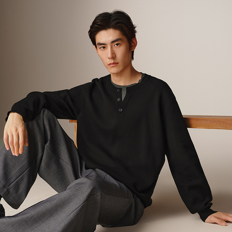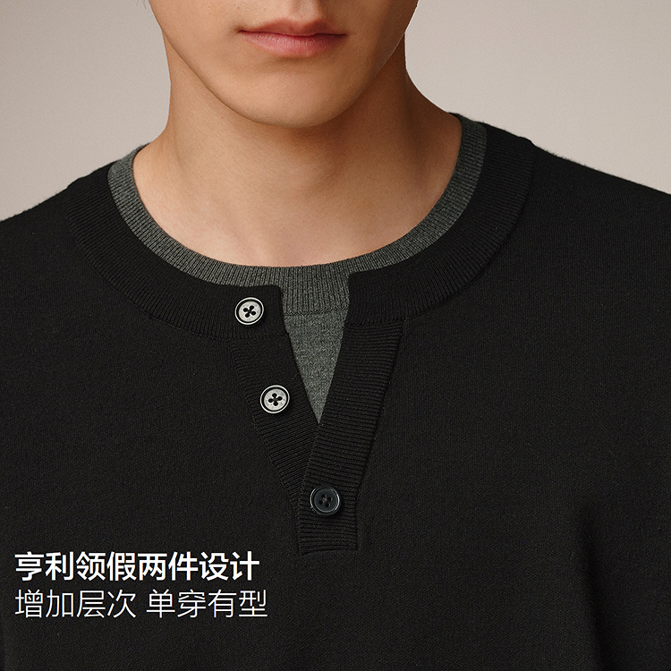 PEACEBIRD MEN Свитер мужской Black 1 Henry Collar Moderate