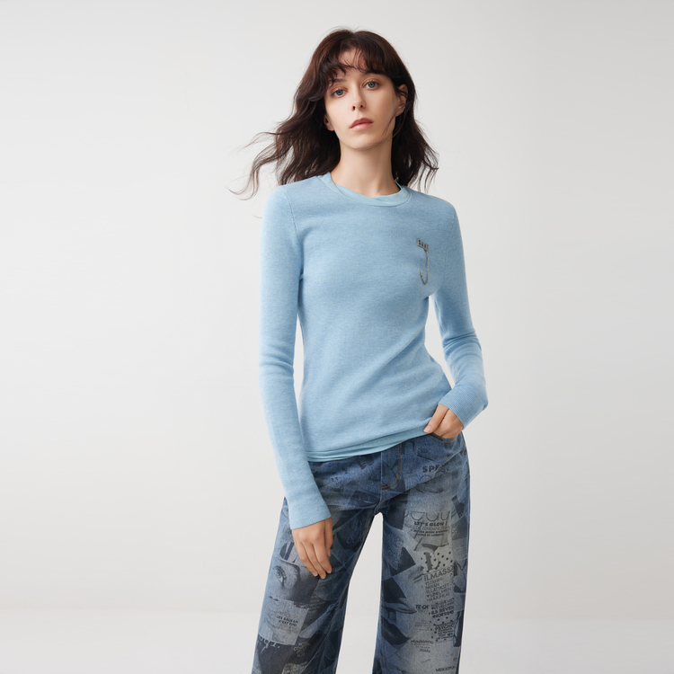 ELLE Свитер Women's Blue Crew Neck Moderate Others 5 938₽