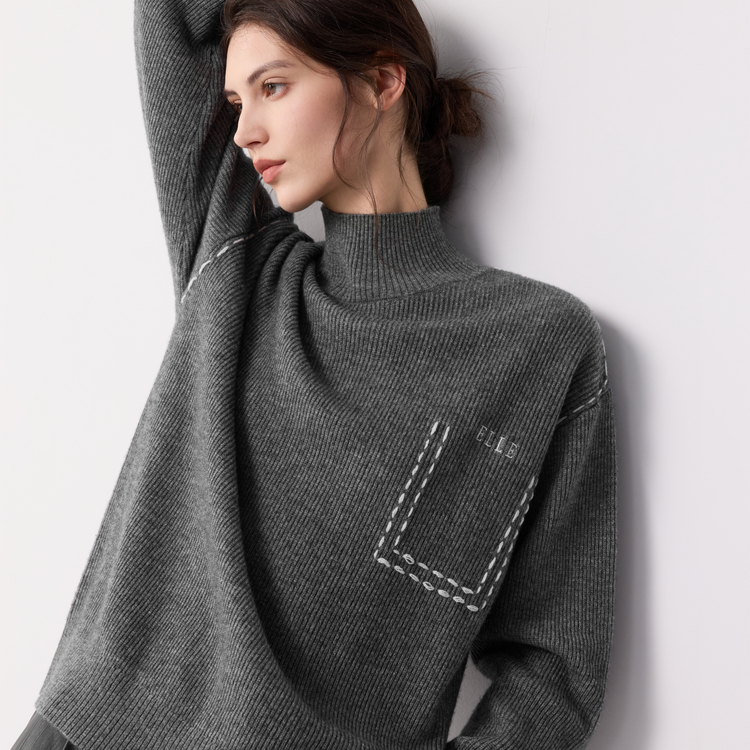 ELLE Свитер Women's Medium Gray Half Turtleneck Moderate 9 072₽