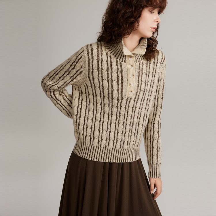 ELLE Свитер Women's Coffee Lapel Moderate Others