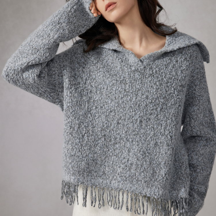 ELLE Свитер Women's Gray Blue Lapel Moderate Others