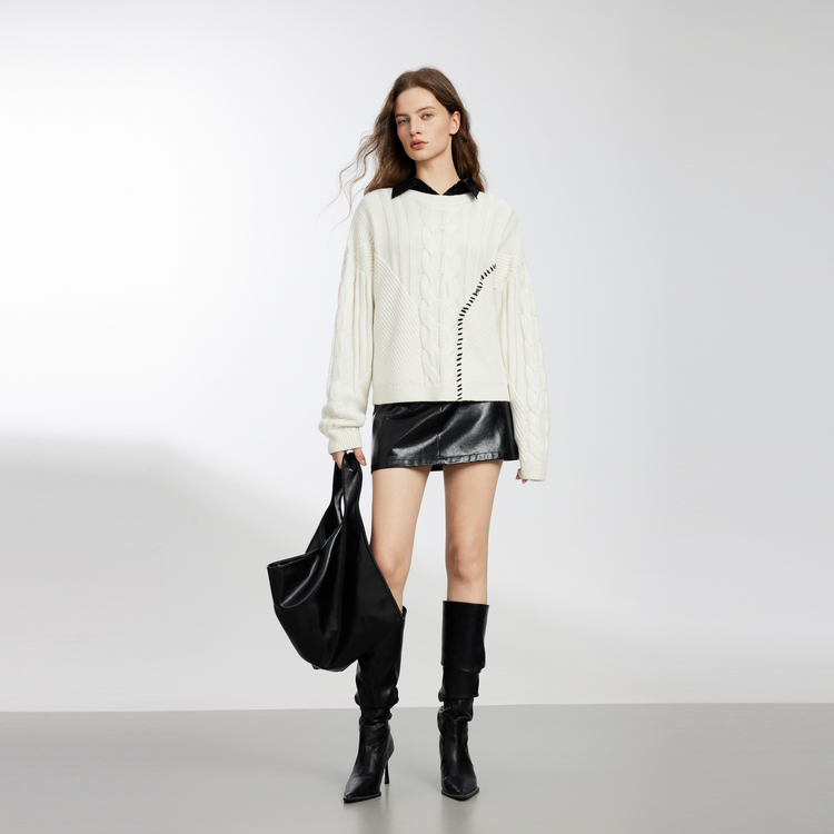 ELLE Свитер Women's Ecru Crew Neck Moderate Others 9 453₽