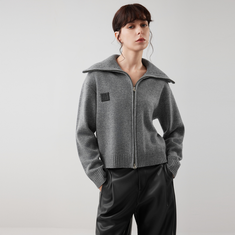 ELLE Свитер Women's Medium Gray Lapel Moderate 11 282₽
