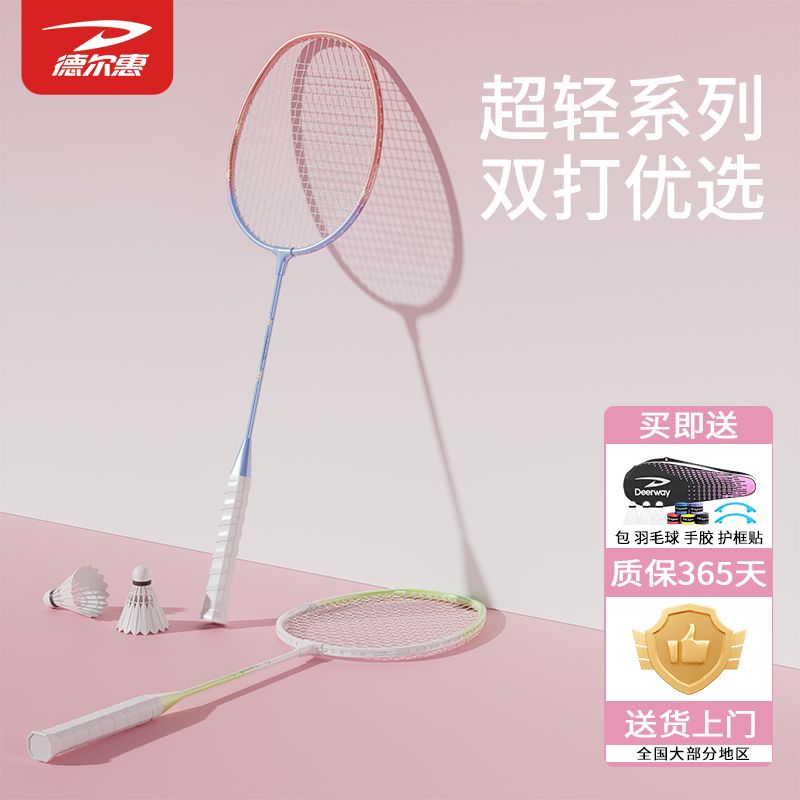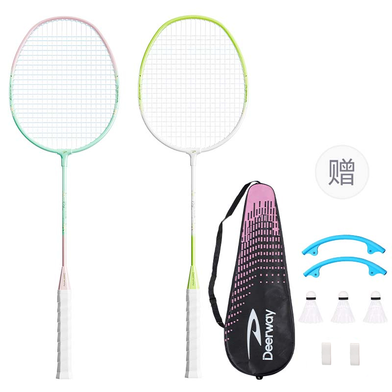 Ракетка для бадминтона Iron Alloy, контроль, универсальная, для защиты, профессиональная, унисекс, 3U/G5 DEERWAY, [828 желтый/синий double rackets]+racket bag+nylon shuttlecock *3+overgrip *2+string cover *2 1 470₽