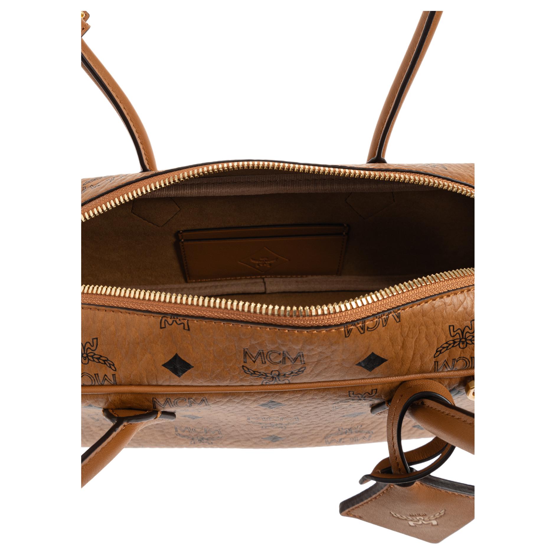 Aren Embossed Leather Shoulder Bag Small Women's Cognac MCM, basic set (bag+dust bag) 50 019₽