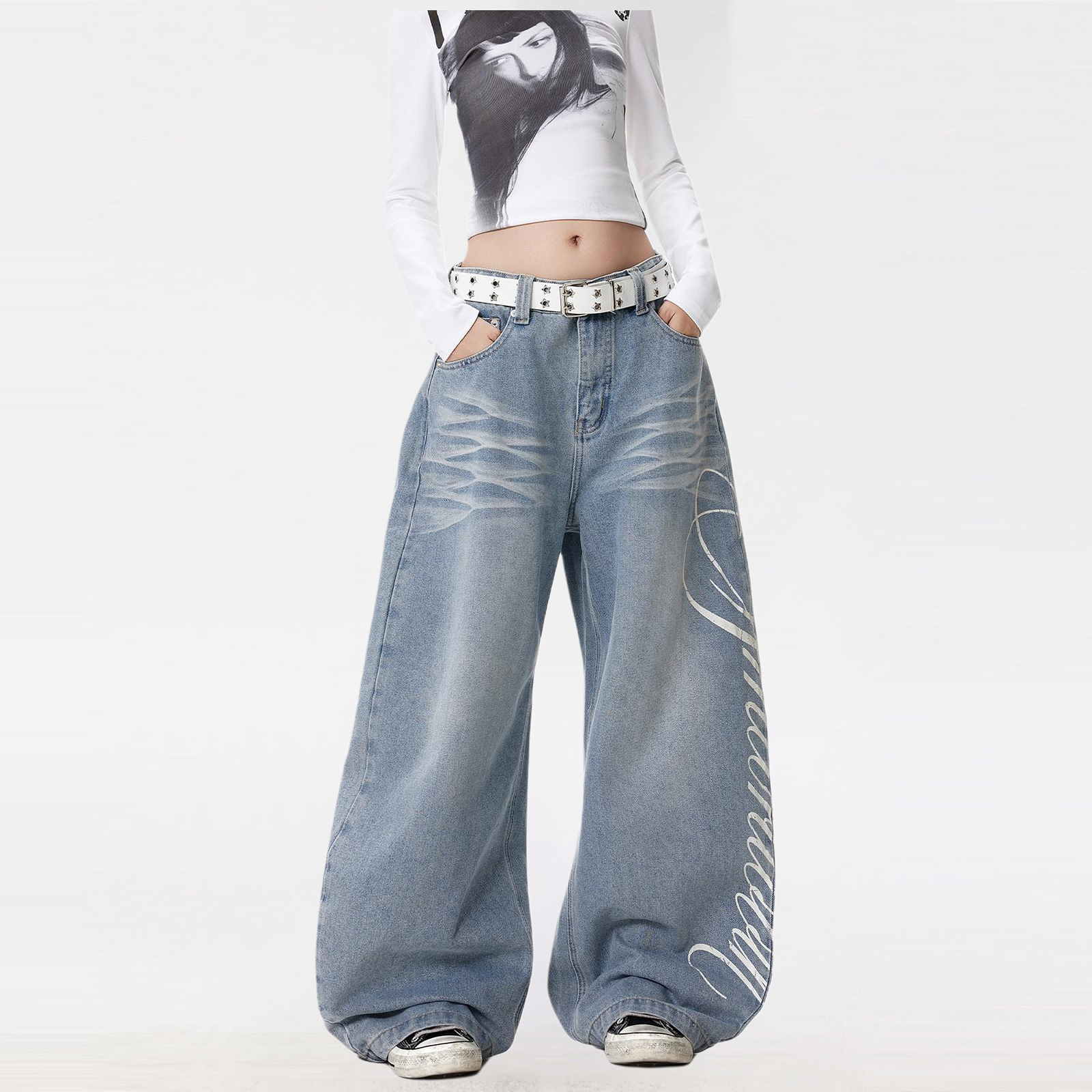 NEVER RULE Джинсы Unisex Light Blue Moderate Wide Leg