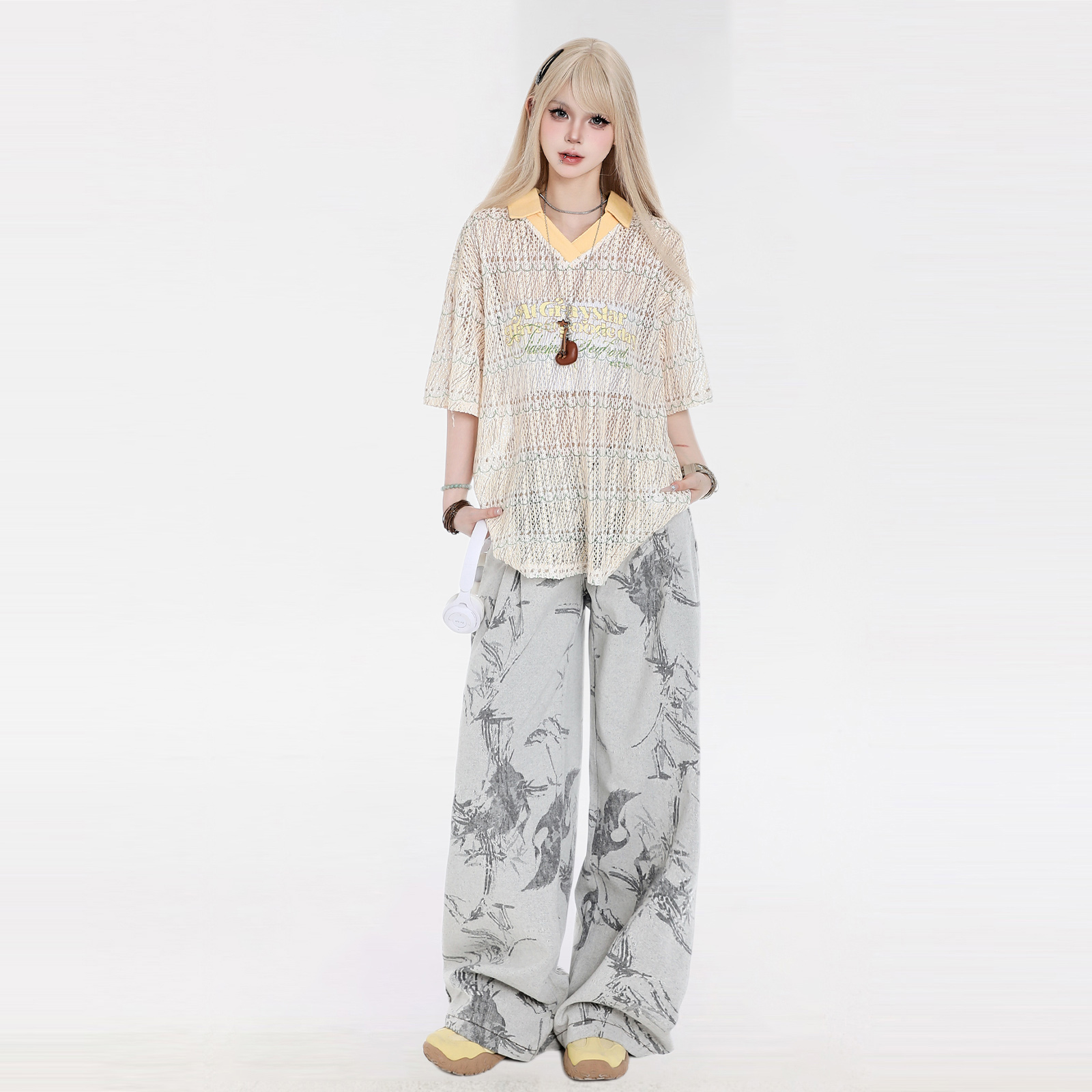 NEVER RULE Джинсы Unisex White Gray Moderate Wide Leg