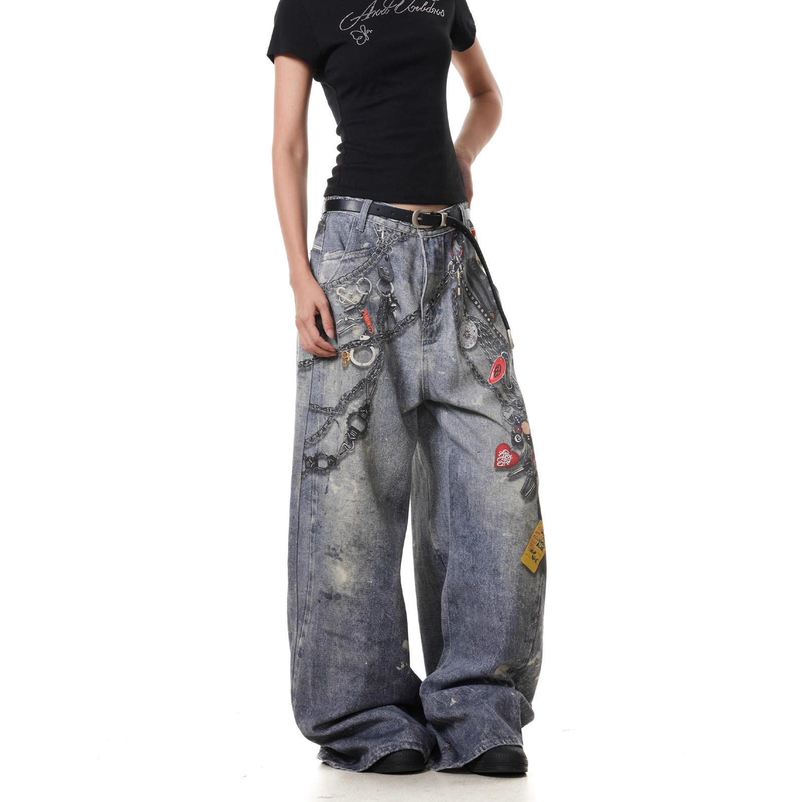 NEVER RULE Джинсы Unisex Blue Moderate Wide Leg