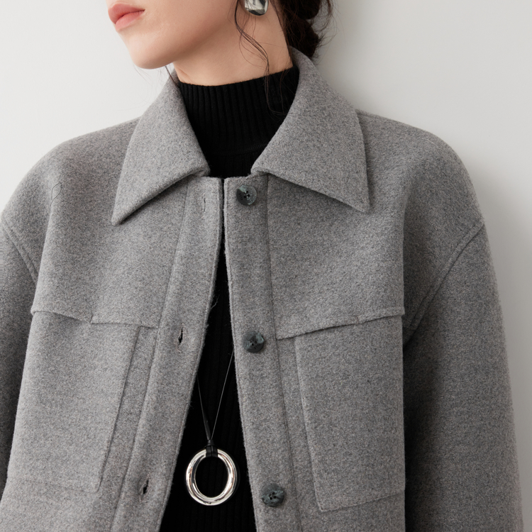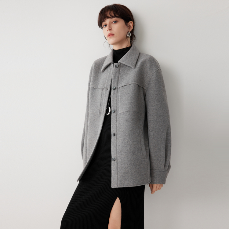ELLE Куртка Women's Medium Gray Lapel Moderate Others