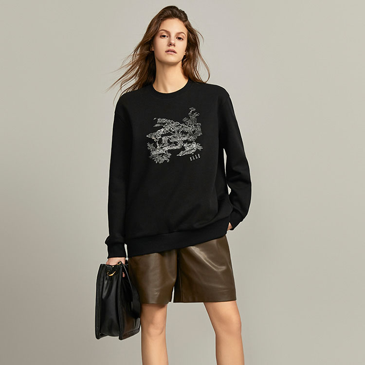 ELLE Свитшот Women's Black Crew Neck Moderate Others 6 949₽
