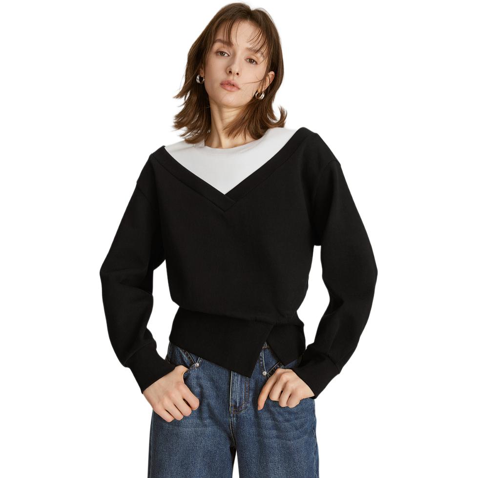 ELLE Свитшот Women's Black Crew Neck Moderate Regular