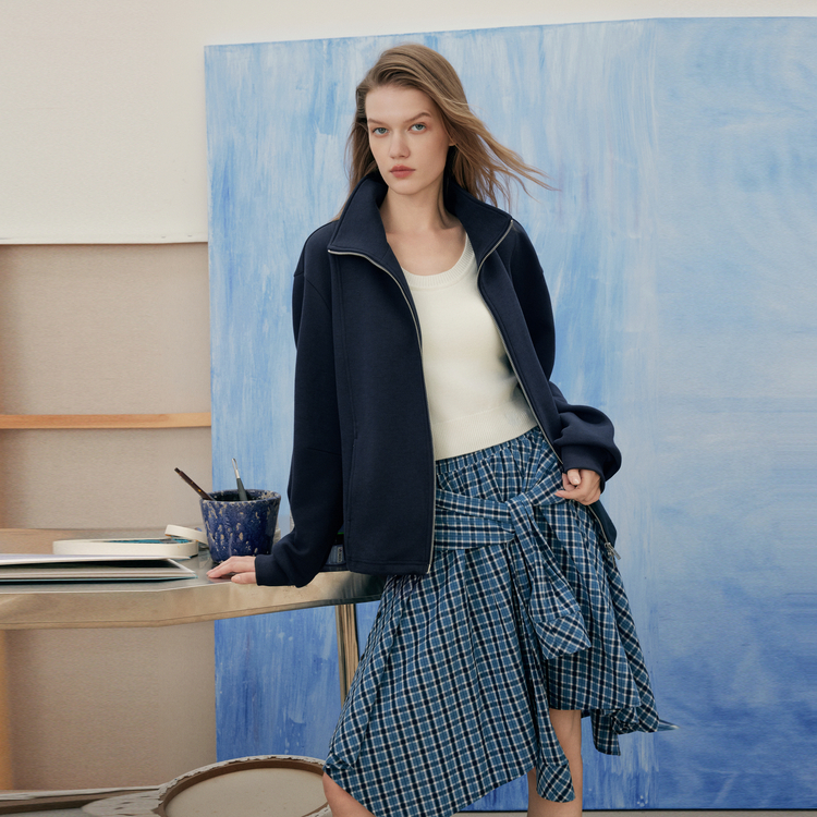 ELLE Свитшот Women's Navy Blue Stand Collar Moderate