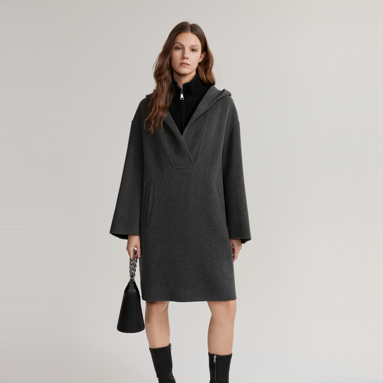 ELLE Пальто женское Medium Gray Lapel Moderate