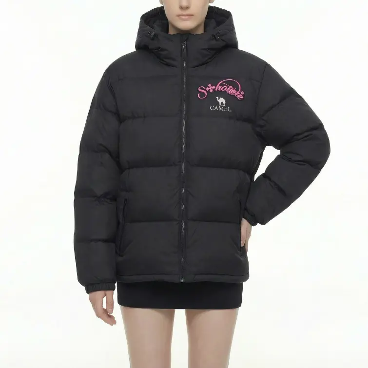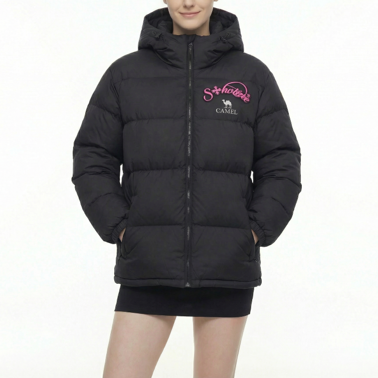 CAMEL Пуховик Unisex Black с капюшоном утепленный