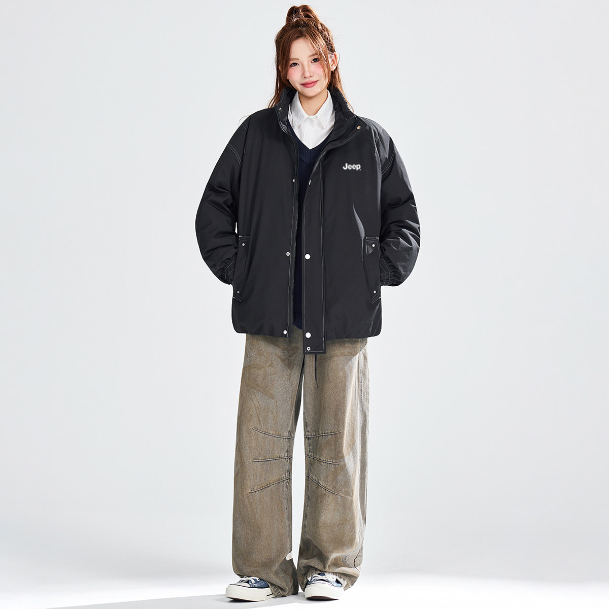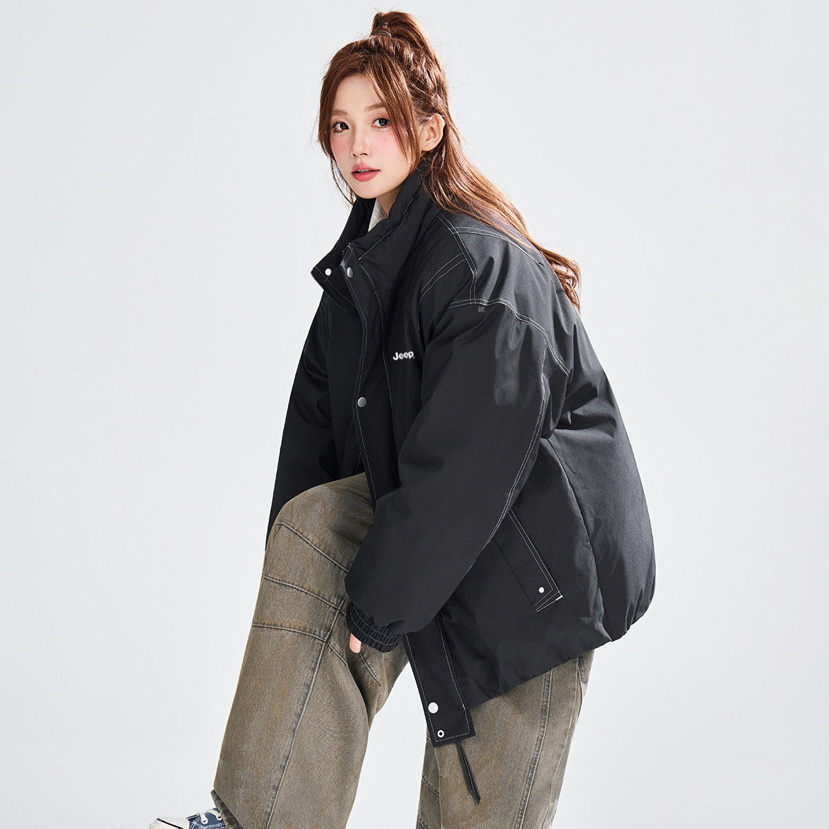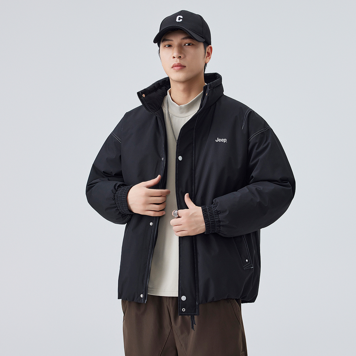 Пуховик Unisex Stand Collar Thickened Jeep, хаки