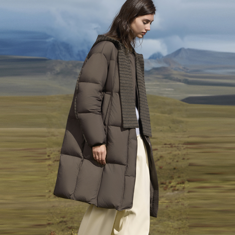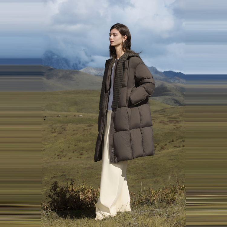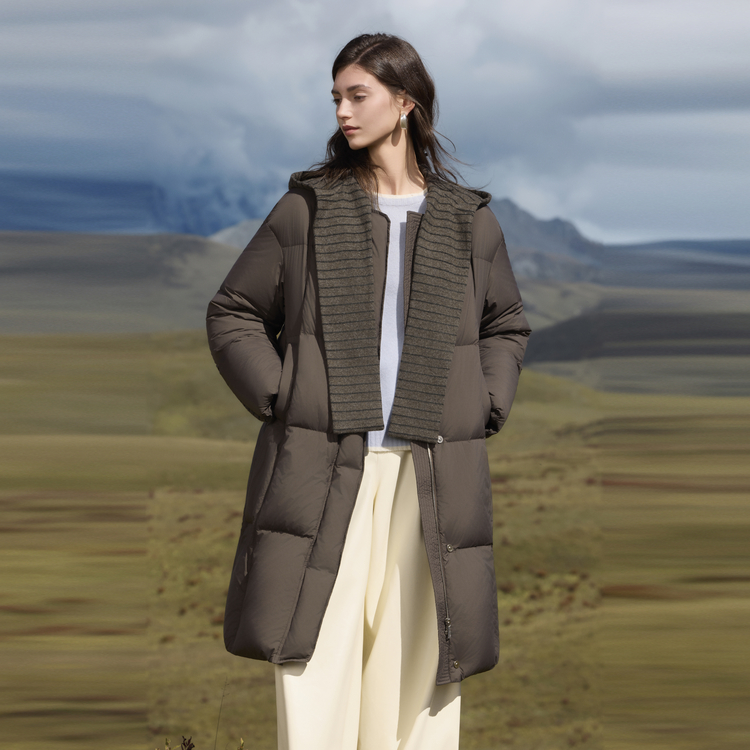 ELLE Пуховик Women's Coffee Hooded Thickened