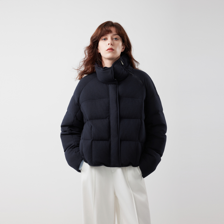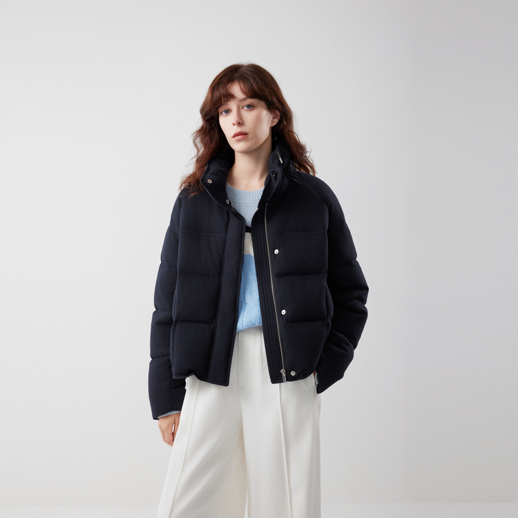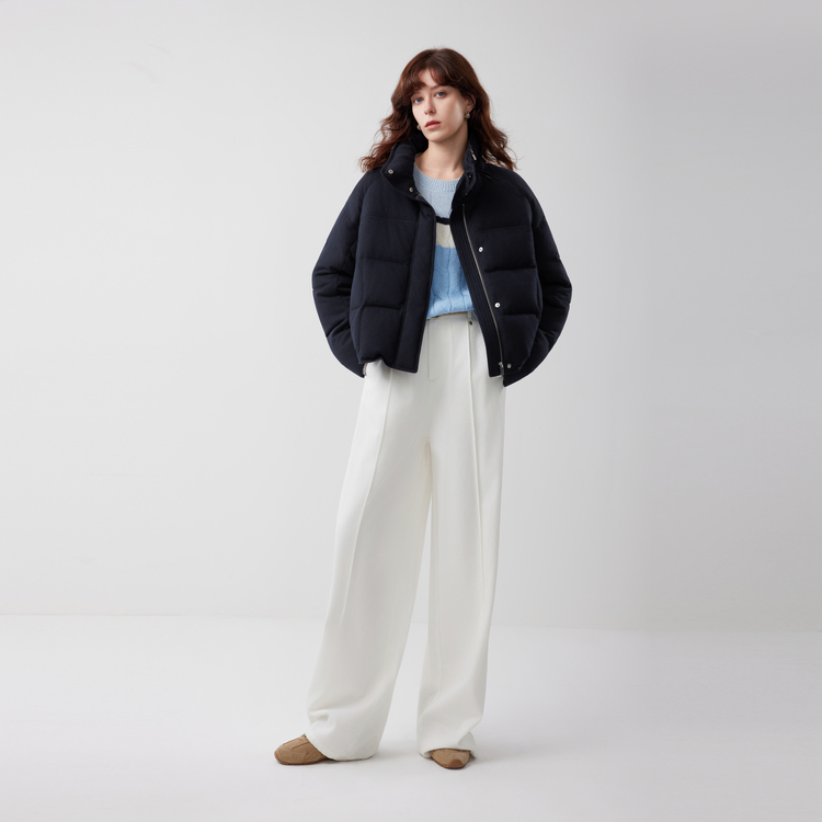 ELLE Пуховик Women's Navy Blue Stand Collar Thickened