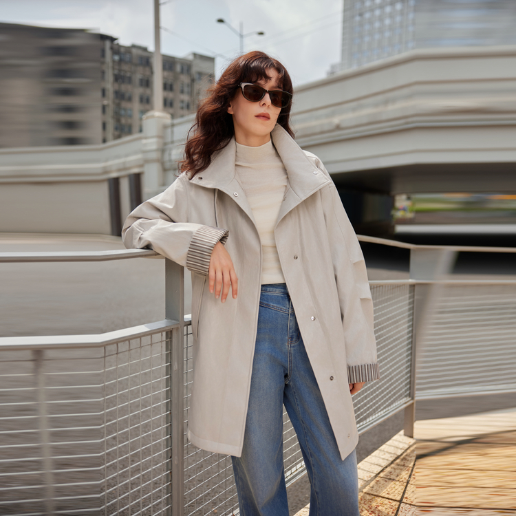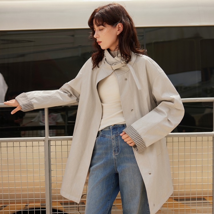 ELLE Пуховик Women's Light Gray Stand Collar Moderate