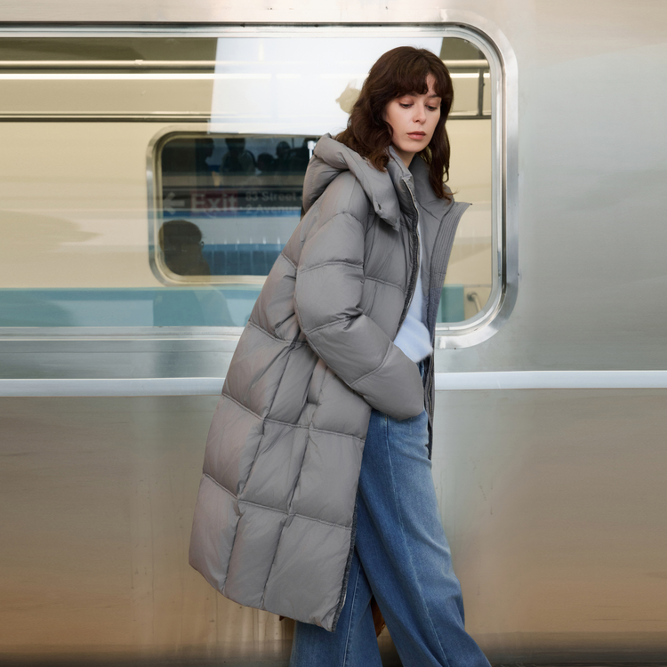 ELLE Пуховик Women's Medium Gray с капюшоном утепленный