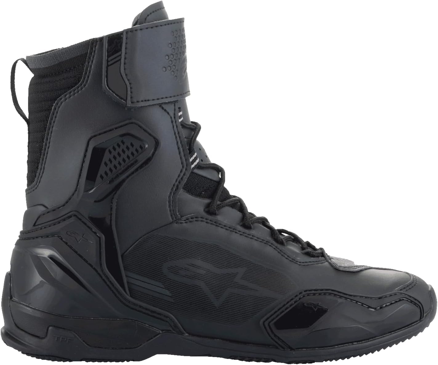 Мотоциклетные ботинки Superfaster Tech обеспечивают комфорт, сравнимый с обувью, и защиту, как у ботинок. Высота ботинок составляет около 25 см, что обеспечивает лучшую защиту и, что более важно, включает в себя более совершенную защиту, такую ​​как встроенная защита голени от ударов, а также новая полужесткая внутренняя система фиксации голеностопного сустава с защитой от ударов лодыжки и защитой ахиллова сухожилия. Дополнительную защиту верхней части ботинок Superfaster обеспечивают двойные литые диски в области голеностопного сустава, боковые панели из термопластичной резины (TPR) на внешней стороне голеностопного сустава, усиленный задник из термополиуретана (TPU) и многослойный носок из термополиуретана с усилением в виде слайдера. Подошва выполнена из промежуточной подошвы Alpinestars TPF с поперечной защитой, которая состоит из нескольких слоев защиты, предотвращающих сгибание или скручивание стопы в неправильных направлениях, а также включает мягкую полиуретановую пену, амортизирующую подушку из ЭВА в области пятки и съемную дышащую стельку OrthoLite. Ботинки Superfaster гарантированно обеспечат защиту на весь день во время езды на мотоцикле, а также комфорт при ходьбе и стоянии. Остальная часть каркаса Superfaster выполнена из усовершенствованной микрофибры и панелей Rideknit с бесшовными термосварными деталями и надежно фиксируется на ноге мотоциклиста с помощью системы быстрой шнуровки и длинной боковой молнии. Общий дизайн также предусматривает специально разработанные точки изгиба для свободы движений, предварительно изогнутую вперед конструкцию для комфорта во время езды, а также низкий профиль, позволяющий Superfaster легко помещаться под любыми мотоциклетными брюками. Superfaster выглядят как спортивные ботинки Alpinestars в джинсах, а благодаря новой подошве ощущаются как ваши любимые кроссовки при ходьбе. Кроме того, Superfaster обеспечивают защиту, как настоящие ботинки, благодаря своей высокой посадке и полному комплекту защиты, предлагая стильный внешний вид и максимальную защиту и комфорт.