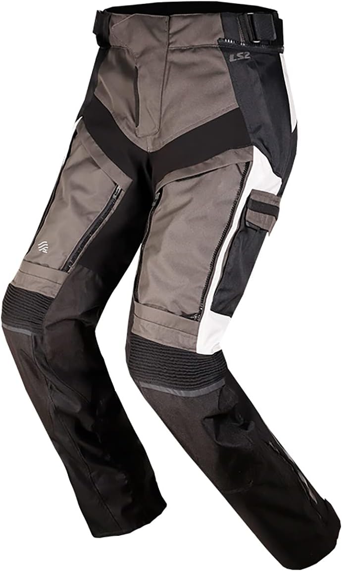 Ткань Оксфорд 450D (полиэстер). Полиэстер рипстоп. Съемная водонепроницаемая подкладка. Водонепроницаемость: (5000 мм H2O). Воздухопроницаемость: (3000 г/м2/24 ч). Съемная термоподкладка. Система LS2 Thigh Innovent. Вентиляционная молния на задней части бедра. Эластичные вставки в области промежности. Эластичные вставки на коленях. Противоскользящая накладка на сиденье для повышения комфорта и контроля. Светоотражающие элементы для улучшения видимости мотоциклиста. Специальная пуговица YKK на переднем клапане. Молния YKK для подготовки брюк к использованию. Хорошая воздухопроницаемость и влагопоглощение. Карман для защиты коленей с системой регулировки положения: 3 варианта защиты. Съемная защита бедер и коленей CE EN1621-1:2012 Уровень 1. Липучка на поясе. Ширина штанины (комбинация молнии и липучки).