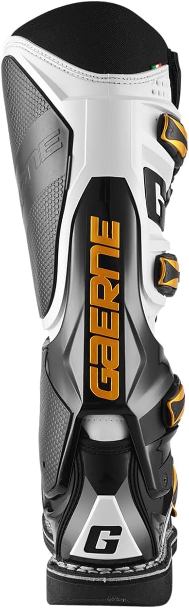 Мотоциклетные ботинки SG12 являются эталоном качества для мотокросса и эндуро. Система DSPS (Dual Stage Pivot System) обеспечивает превосходную боковую поддержку, предотвращая чрезмерное сжатие и переразгибание, и позволяет стопе райдера чувствовать себя естественно на подножке во время переключения передач или торможения. Ботинок оснащен передней защитной пластиной из полиуретана и стратегически разработанной пяточной чашкой для дополнительной защиты и комфорта. Носок имеет прецизионную форму, улучшая ощущение рычага переключения передач и оптимизируя управление мотоциклом. Система застежки состоит из четырех легких и сменных пряжек с резиновыми вставками для оптимального сцепления и тяги во время использования. Кроме того, ремешок на липучке сверху обеспечивает точную и надежную фиксацию. Первые две верхние пряжки регулируются, что обеспечивает универсальность для больших ног или наколенников. Резиновая вставка «Grip Guard» на внутренней стороне ботинка не только обеспечивает исключительное сцепление с мотоциклом, но и служит термостойкой подкладкой для внутренней стороны ноги. Внутренняя подкладка выполнена из знаменитой пены Gaerne Memory Cell Foam, обеспечивающей индивидуальную поддержку и комфорт. Эта усовершенствованная пена гарантирует оптимальное и комфортное использование, повышая общий комфорт и производительность. Стелька имеет формованную конструкцию, обеспечивающую правильную поддержку стопы. В задней части стельки использован новый амортизирующий материал, обеспечивающий комфорт во время езды. Передняя часть конструкции разработана для вентиляции, способствуя циркуляции воздуха и сохраняя стопу в прохладе. Технология Gaerne Goodyear Welted, неизменно используемая Gaerne с 1962 года, обеспечивает создание прочной и долговечной подошвы. Эта приверженность качеству и долговечности стала краеугольным камнем мотокроссовых ботинок Gaerne. Кроме того, этот метод конструкции позволяет легко менять подошву, давая возможность вдохнуть новую жизнь в ботинки. Наша непоколебимая приверженность технологии Goodyear Welted является свидетельством нашего стремления поддерживать исключительные стандарты качества нашей продукции. Подошва из двойного композитного материала имеет специально разработанный рисунок протектора, обеспечивающий исключительное сцепление с крюками, особенно на сложной мокрой и грязной местности. Ботинки SG12 сертифицированы по стандарту CE в соответствии с EN 13634:2017 и Регламентом ЕС 2016/425. Сделано в Италии.