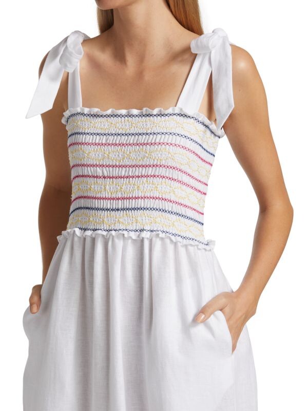 Платье Jenny из хлопка украшено яркими полосками вдоль лифа.