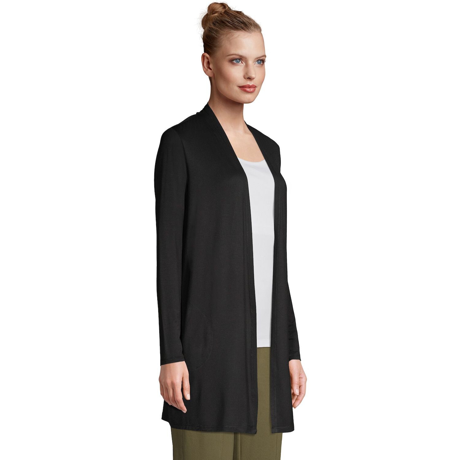 Так много возможностей. Привлекательный легкий открытый перед и универсальная длина этого миниатюрного кардигана Lands' End с открытой передней частью означают бесконечное количество слоев.