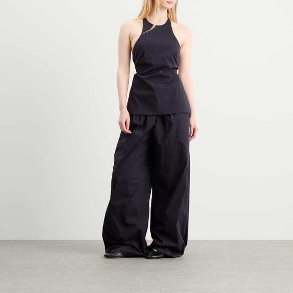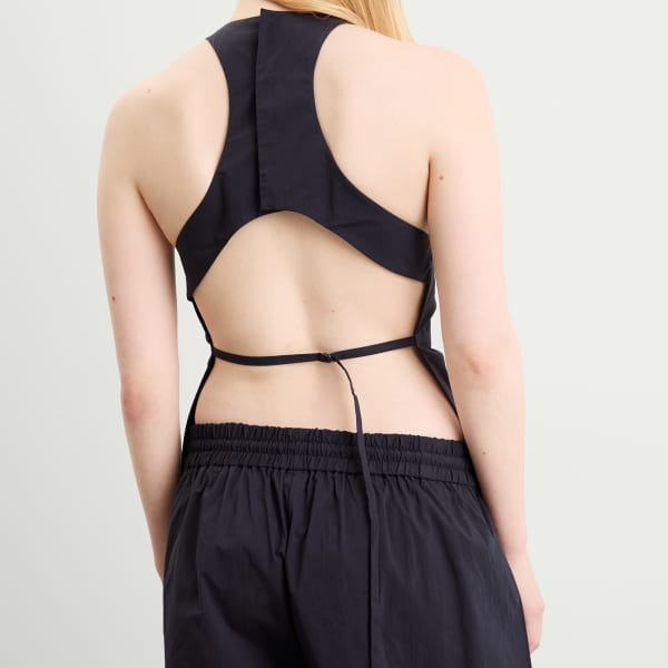 Бренд St Agni из Байрон-Бей, известный своим непринужденно элегантным стилем, переосмысливает классическую майку, создавая топ с вырезом-борцовкой. С высоким воротником и скульптурными вытачками на груди, он обеспечивает четкий, структурированный перед, а открытая спинка и изящная завязка создают более мягкий, струящийся контраст. Форма борцовки добавляет спортивности, делая его эффектным базовым слоем для теплой погоды.