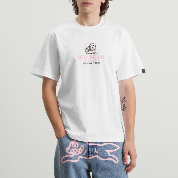 Футболка Serve It Best от ICECREAM - это дань уважения искусству подачи сладких блюд. Яркий принт на передней части и мягкий хлопковый материал делают ее игривым намеком на наслаждение, идеально подходящим для повседневного стиля.