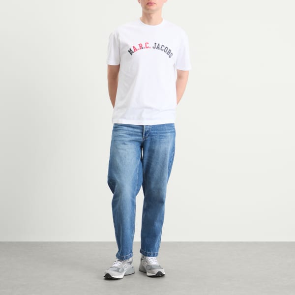 Это сотрудничество - встреча единомышленников: чистые линии и вневременной крой APC оживляются благодаря смелому брендингу Марка Джейкобса и отсылкам к поп-культуре. Культовый логотип Марка Джейкобса «THE» занимает центральное место на классической футболке APC прямого кроя, где название бренда, написанное университетским шрифтом и выделенное красным, превращается в «ARC» - игривый подход к совместной графике и фирменному стилю.