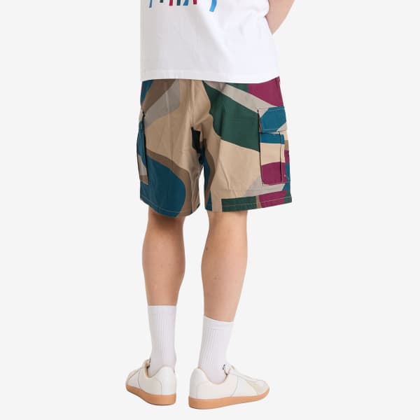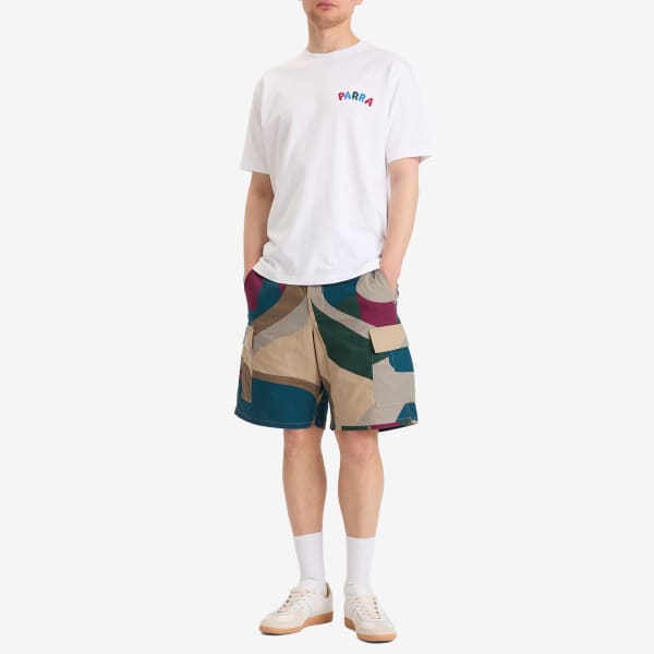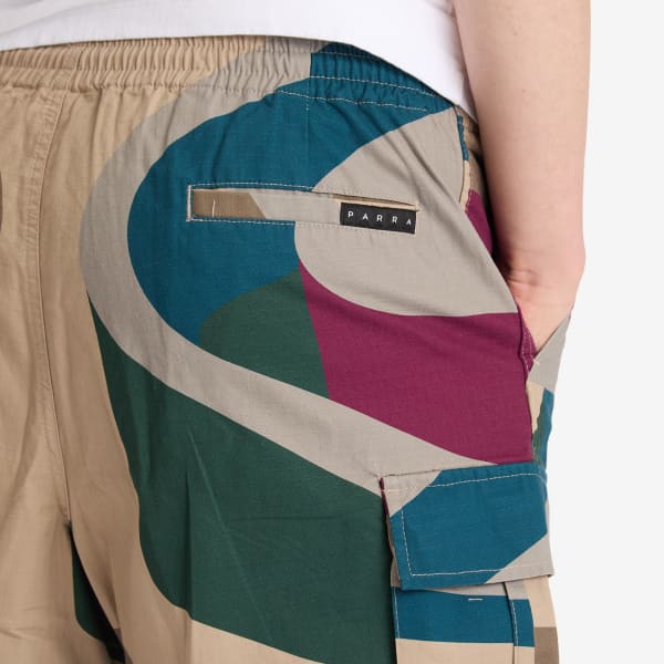 Эти шорты By Parra украшены принтом в виде абстрактного камуфляжного рисунка Parra по всей поверхности прочного хлопкового материала рипстоп, сочетающего в себе практичность и смелый визуальный стиль. Благодаря двум большим накладным карманам, фирменной вышивке и сочетанию функциональных деталей, они обеспечивают прочный, готовый к городскому образу крой с фирменным художественным стилем бренда.