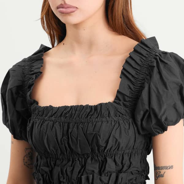 Представляем ваше новое любимое маленькое черное платье: Lyza от Damson Madder. Сшитое из 100% органического хлопка, оно имеет квадратный вырез, пышные рукава и присборенный эластичный крой. Это мини-платье, которое идеально подойдет как для бранча, так и для коктейльной вечеринки.