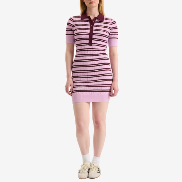 Это мини-платье от Good American сочетает в себе классические детали стиля преппи с элегантным современным кроем. Изготовленное из мягкой трикотажной ткани с косами, оно украшено яркими полосками в университетском стиле и имеет облегающий силуэт. Разработанное с учетом принципов Good American, ориентированных на идеальную посадку и инклюзивность, оно обеспечивает чистый, уверенный стиль и комфорт на каждый день.