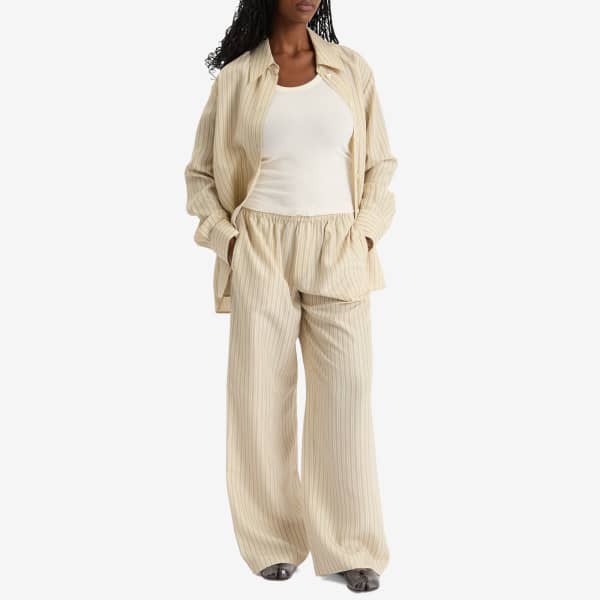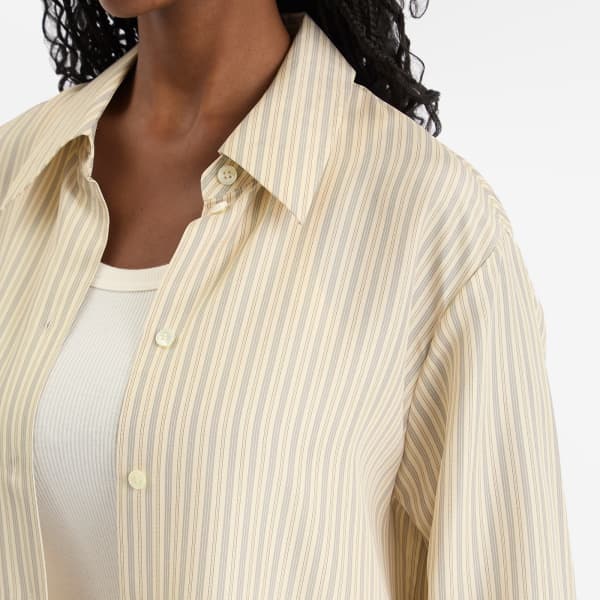 Если вы цените роскошный минимализм, Róhe - это именно то, что вам нужно, особенно эта полосатая рубашка. Настоящая базовая вещь в гардеробе, она отличается сдержанной красотой благодаря гладкому шелку в тонкую полоску и острому воротнику-стойке, который добавляет необходимую структурность.