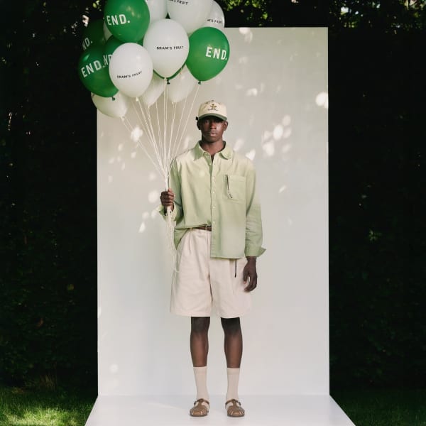 В честь двадцатилетия работы в сфере культуры и стиля END. объединился с голландским брендом Bram's Fruit для создания яркого дополнения к своей юбилейной коллекции «Greengrocers». Воспевая очарование любимых британских магазинчиков на углу, они сочетают ностальгию по местным сообществам со свежим дизайнерским взглядом. Bram's Fruit представляет свой садовый шарм в хлопковой рубашке с эффектом тай-дай и уникальной обработкой. Завершающие штрихи включают в себя тонкую вышивку - логотип Bram's Fruit украшает нагрудный карман, а надпись END. вышита на кокетке спины.