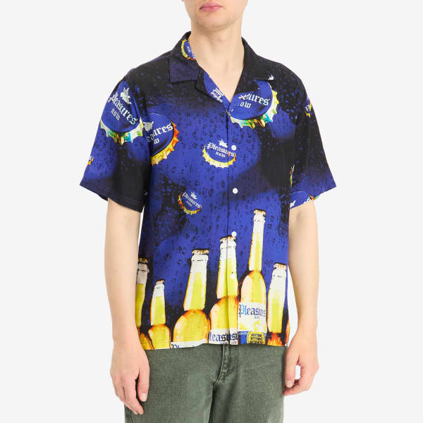 Эта рубашка Pleasures, созданная специально для вашего отпуска, сшита из дышащего и легкого вискозного полотна. Рубашка имеет отложной воротник, короткие рукава и свободный крой. Откройте бутылку пива, наслаждаясь графическим принтом по всей поверхности.