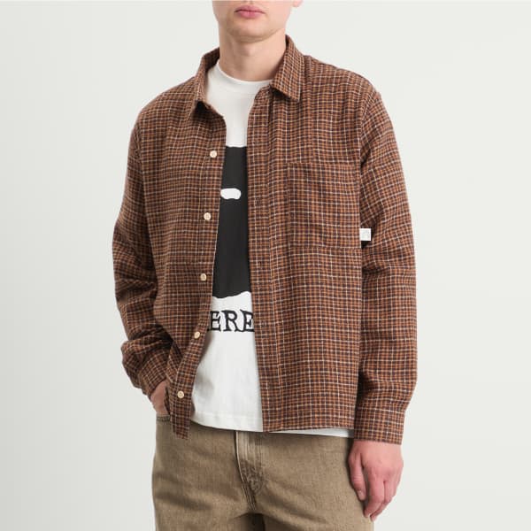 Коллекция Heresy «Haerfest» возрождает остатки угасающего сезона, где упадок становится плодородной почвой. Рубашка Deft из коллекции осень-зима 2025 отличается свободным кроем, клетчатым принтом по всей поверхности и осенней палитрой, отражающей более мрачное настроение сезона.