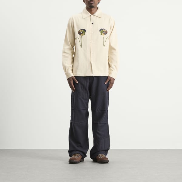 Рубашка Martin от Kardo с вышивкой вдохновлена винтажным стилем милитари, предлагая структурированный силуэт без ущерба для комфорта. Благодаря отложному воротнику она позволяет создать два разных образа: в стиле кэмп и в стиле кэмп. Эта универсальность сочетается с фирменным мастерством Kardo: ручная вышивка, экологичное окрашивание и ручная отделка от начала до конца одним портным, что делает каждое изделие продуманным сочетанием традиций и индивидуальности.