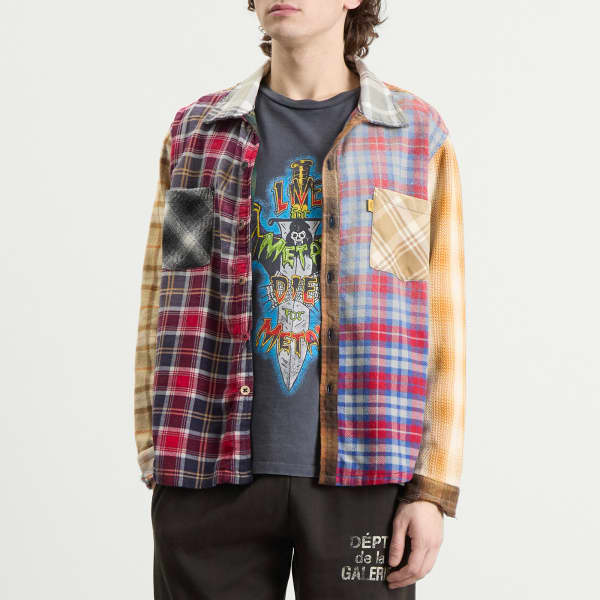 Gallery Dept., культовый бренд, объединяющий искусство и моду, представляет рубашку Marley - клетчатую фланелевую рубашку на пуговицах, изготовленную из винтажных тканей. Каждое изделие уникально, демонстрируя сочетание принтов, обработок, красителей и потертостей, отражающих приверженность бренда аутентичности и мастерству. Рубашка имеет два нагрудных кармана и потертые акценты вдоль воротника и манжет, а также внутреннюю нашивку «Retouche» и фирменную этикетку Gallery Dept. «art on display» на манжете.