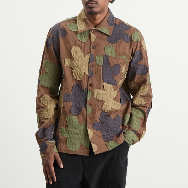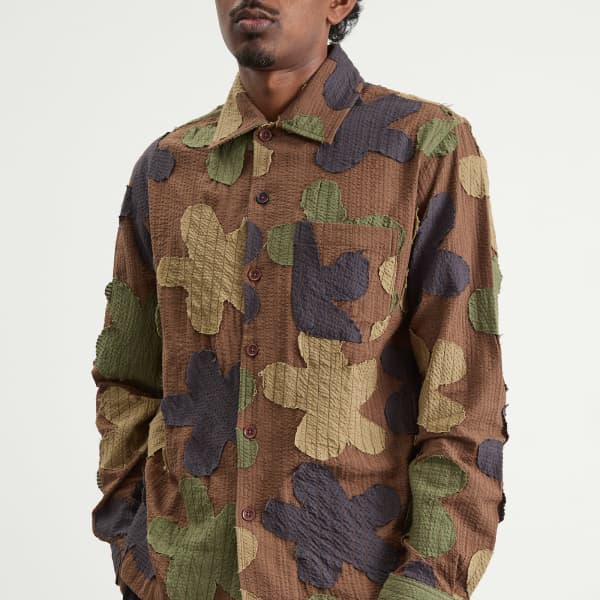 Каждое изделие Kardo изготавливается одним портным от начала до конца, что подчеркивает прозрачность и мастерство. Камуфляжная рубашка Martin вдохновлена практичностью винтажных военных моделей. Изготовленная из хлопкового сирсакера и сшитая из переработанных производственных отходов, она окрашена экологически чистым способом и отделана вручную. Трансформируемый воротник добавляет универсальности - носите его расстегнутым для более строгого образа или открытым для расслабленного, повседневного стиля. Рубашка отделана пуговицами из корозо и имеет свободный крой, она создана с учетом особенностей и характера.